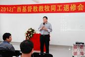 为提高广西壮族自治区教牧人员的综合素质,积极抵制异端、努力办好教会,2012年11月21日至24日,广西基督教两会举行了“2012广西基督教教牧同工退修会”,共有110位教牧同工参加。