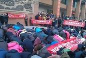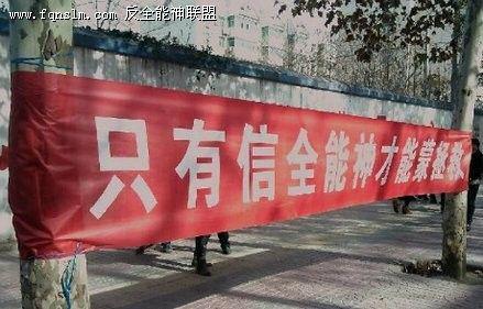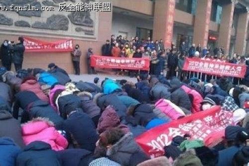 近日,异端邪教“东方闪电”(又名“全能神”)借“末日传言”在全国各地开始大肆行动,媒体纷纷曝光,网友们在QQ群里、微博里也纷纷揭露、转发。12月13日,“反全能神联盟”网站发布了一组题为“近期全能神邪教疯狂”的图片,从图片里,可以看到“全能神”活动时打出的一些标语和活动的方式。借着“末日传言”,以打横幅、聚集、游行的方式宣传唯有信他们所谓的“全能神”才能得拯救、保平安。