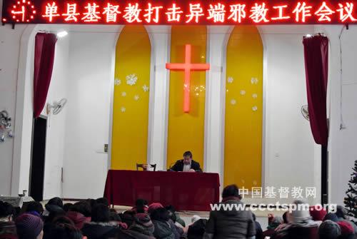 山东省菏泽市单县基督教两会于2012年12月20日,在县中心堂召开全县各教会抵御异端邪教工作会议。