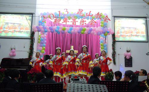 美丽的霓虹闪烁着耀眼的光芒,宁静的夜晚传来了优美的歌声,圣诞的喜庆未消,新年的钟声已响,昆山市基督教一年一度的新年音乐会于2013年1月1日晚在昆山市基督堂如期举行,上帝的儿女在这里以一种特殊的情怀歌唱伟大的祖国,感恩赞美上帝。