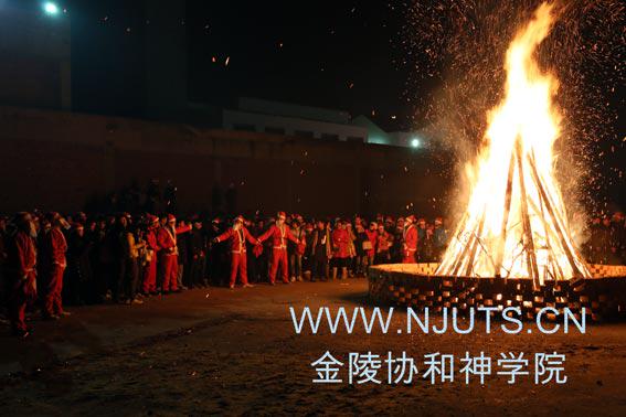 2012年金陵协和神学院平安夜篝火晚会于12月24日19点在该院举行,晚会以该院唱诗班的大合唱《平安夜》拉开帷幕。晚会汇集了包括情景剧、相声、圣剧、舞蹈、诗朗诵等节目,圣诞老人的出现将人们带到了篝火晚会现场,音乐的赞美,篝火燃起,将晚会推向高潮。