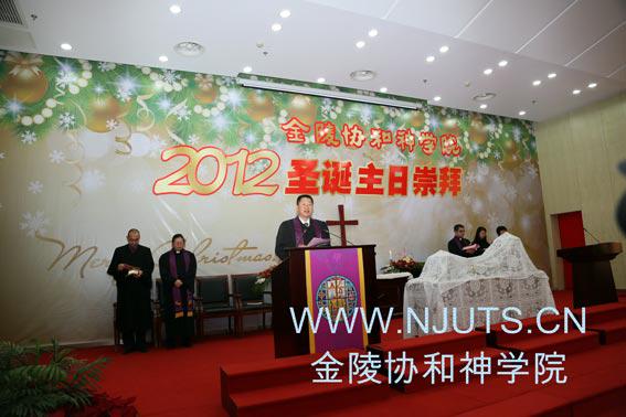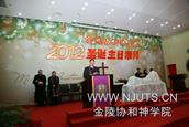 金陵协和神学院圣诞圣餐主日崇拜于2012年12月23日在院礼堂举行,金陵协和神学院唱诗班献诗,陈逸鲁牧师以“圣诞节——荣耀的节日”为题做了证道分享,讲到圣诞节不单单是狂欢的节日,更是荣耀的日子。证道后陈逸鲁牧师和孙美慈牧师主礼圣餐礼。