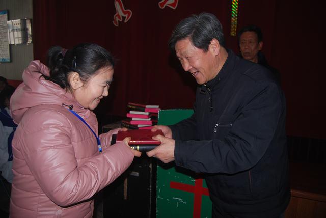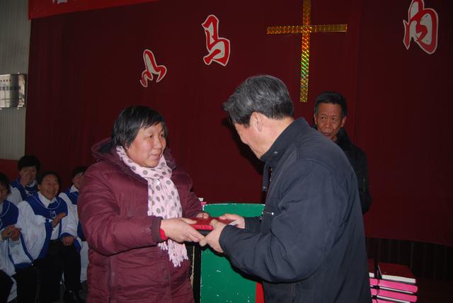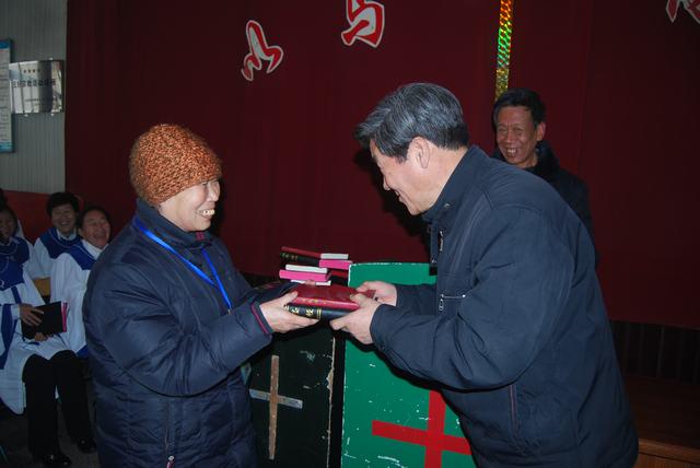 凤城教会主任王保贵长老做了简短讲话后,宣布各团契受表彰名单,每人发给《圣经》一本、新编《赞美诗》一本。奖品由县基督教两会负责人牛天平牧师颁发。