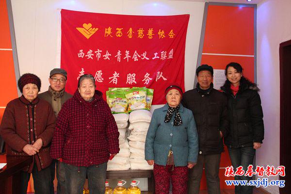 1月30至31日,西安基督教女青年会慰问组在肖陆美总干事的带领下,先后慰问了驻地新民社区的8户残疾、孤寡等贫困家庭,看望了西安春晖老人院的重度痴呆老人患者和无子女照顾的老年朋友们,给他们分别送去了米、面、油、老年人豆奶粉、燕麦片等慰问品,共计80份,真切地将女青年会服务弱势群体的理念付诸于实践,温暖社会大众。