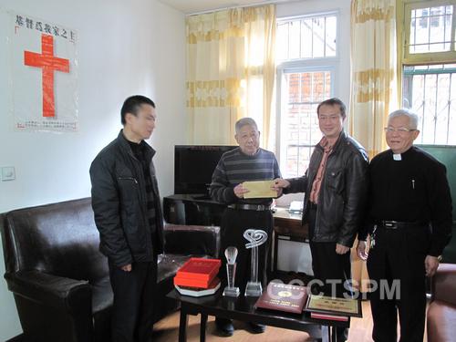 在2013年新春来临之际,福建省基督教三自爱国运动委员会主席岳清华博士等负责同工,分别于2013年2月3日及8日,前往福州等地看望福建教会老同工及其家属,同时委派副会长兼总干事张记有牧师前往邵武看望“感动中国十佳人物”朱邦月弟兄等,带去了省基督教两会对这些老人们的关心和慰问。
