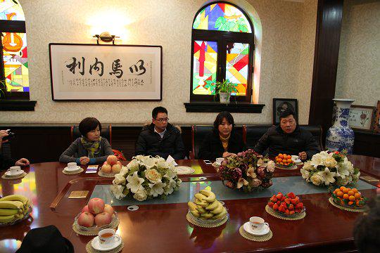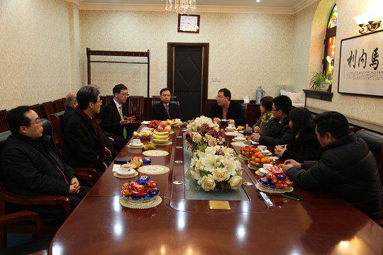 2013年2月21日下午,北京基督教会崇文门堂主任牧师柳翠敏带领李华牧师、张文哲牧师两位同工,热情接待了韩国富平第一监理教会李天微教授、韩国牧园大学李君高教授、协成大学黄炳培教授一行五人。
