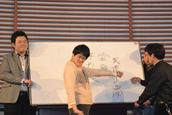 随后黄博士也登上讲台。由于发音困难,因此她选择了由大家提问,她写字来回答的方式来与台下的观众进行互动。当她用特殊的笔体,表达出她心中对上帝的深深的依靠之时,许多弟兄姊妹都留下了感动的眼泪,同来的白血病女孩麦蓉姊妹也为主做了见证。