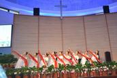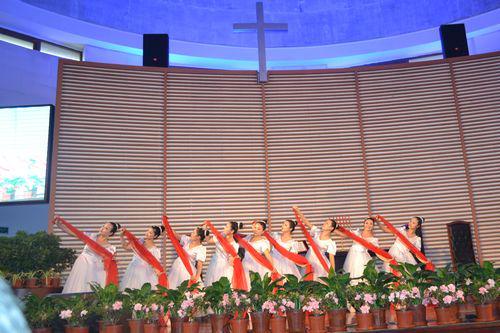 丰台堂舞蹈团契的姊妹们也献上了舞蹈《真爱在呼唤》。她们身穿白裙,手拿轻纱,伴着“世界哪里有真爱”、“真爱是耶稣”、“他在呼唤你”的歌声跳起了轻快地舞蹈。