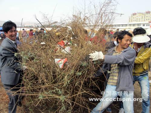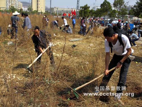 为响应政府的组织活动,云南省基督教三自爱国运动委员会主席余文良牧师、云南基督教神学院院长罗德顺牧师以及云南基督教神学院的全体师生120余人对所辖区域进行了一次全面清洁打扫。