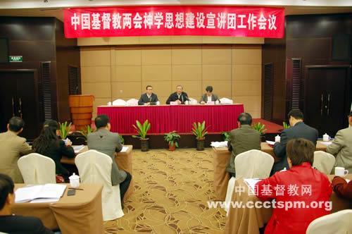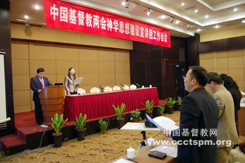 2013年3月26日上午,中国基督教两会神学思想建设宣讲团工作会议在上海新苑宾馆召开。神学思想建设宣讲团成员,以及各省、自治区、直辖市基督教两会负责同工近八十人参加了此次会议。