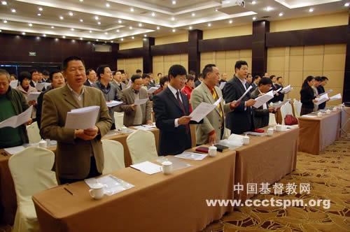 上午的会议由中国基督教三自爱国运动委员会主席傅先伟长老主持。