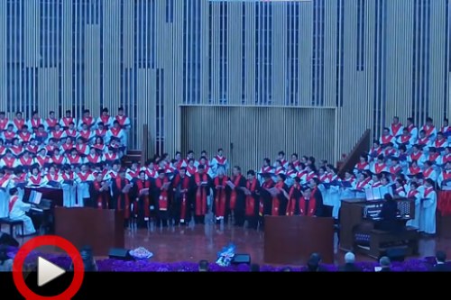 3月31日(复活节)下午,南京市基督教最大的礼拜堂举行了献堂礼拜。在献堂礼拜上,14位牧者、众诗班成员和全体会众在两个琴师的伴奏下向神献上了《我爱中国教会歌》。