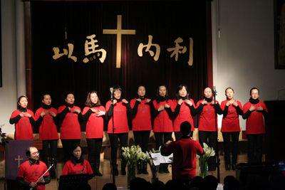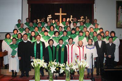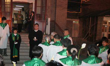 2013年3月31日晚,北京缸瓦市堂全体会众在颂赞歌声中宣告着——基督我主今复生(新编赞美诗107《大启乐园歌》)。