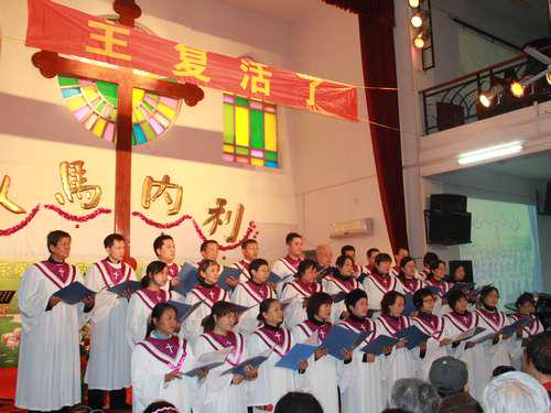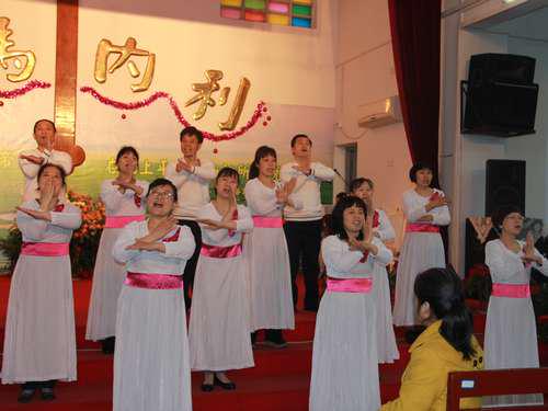 感恩堂圣乐诗班在江竹牧师的带领下,献唱大合唱《和撒拿》、《十架七言》、《耶稣复活》、和《主活在我心中》把会众的心带进对基督的敬拜当中。傅于浩老师带领中青年团契的歌伴舞《十字架的爱》赢得了会众的阵阵掌声,心灵之光团契的20多位盲人信徒在李利山教师的带领下献唱《每当我想起你》使崇拜达到了高潮,引起会众的共鸣,信众自发的欢呼“哈利路亚”,“主复活了”。