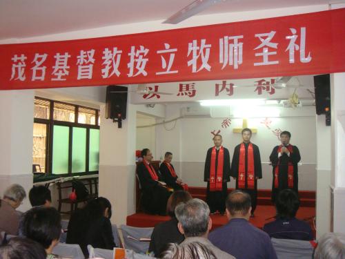 2013年4月6日,广东省基督教两会在茂名市基督教慈爱堂举行按牧典礼,按立茂名市基督教慈爱堂的汤贵利、水东福音堂的高华强两位传道为牧师。