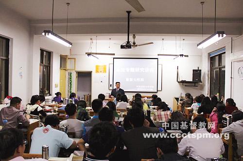 应毕业班六十八位学员的要求,2013年4月14日晚,在河南省圣经专科学校三年级教室,专科班三年级班主任靳新元牧师根据自己十多年圣经思考的经历,通过认真总结后,给同学们开办了一场实用的有关圣经专题研究的讲座。