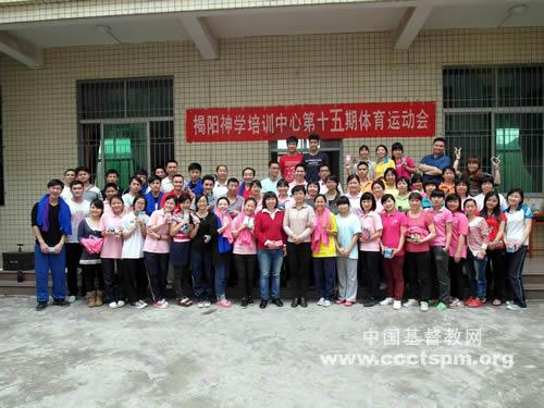 2013年5月7日,广东省揭阳市基督教神学培训中心举行第十五届运动会,比赛设有:三人篮球赛、跳绳、羽毛球单打、呼啦圈、踢毽子、托乒乓球、定位投篮、单车、乒乓球、拔河十个项目。