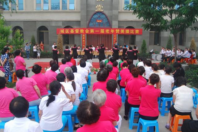 继几天阴霾下雨,天气突然放晴后,6月8日上午,山西省基督教晋城城区教会举行首届老年赞美操友谊赛。