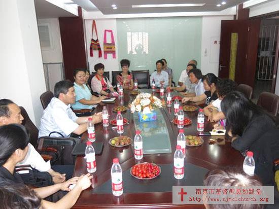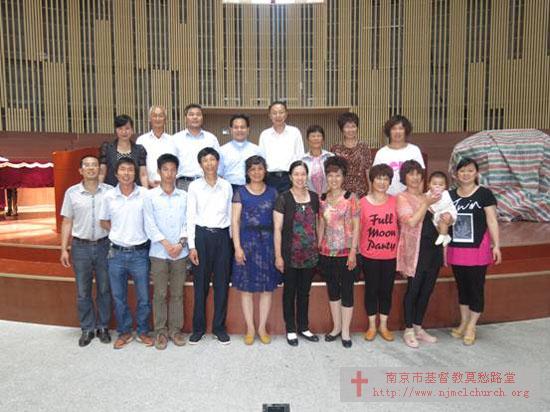 2013年6月4日上午,江苏宜兴市张渚教会杨光恩牧师带领15位堂委义工,在江苏神学院刘世和牧师陪同下,至南京市基督教两会访问,并参观莫愁路堂、圣训堂。南京市基督教三自爱国会主席李兰成牧师及莫愁路堂王雪峰牧师、樊蕾牧师、李光明姊妹等参与接待。