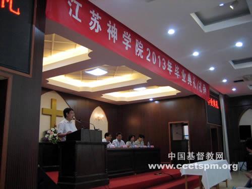 上午10:00,江苏神学院2013届毕业典礼正式举行,副教务长张克全牧师主持典礼。江苏省宗教事务局、江苏省基督教两会及江苏神学院的有关领导出席典礼现场。