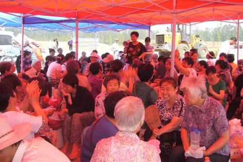 2013年6月13日至18日开封市基督教两会及六教堂维护教会合法权益已有6天了,宗教局的领导,统战部的领导都来了。谈的结果说给300万,不说什么钱,没有说这300万以什么名目给的,不承认是占地赔偿金,不落实汴政(2005)35号文件的处理决定。6月17日开封发布高温橙色预警信号:最高气温37度以上。主日弟兄姊妹在这空旷的田野在遮阳棚下敬拜聚会。每天弟兄姊妹在这里歌唱赞美祷告,高唱哈利路亚赞歌。