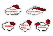 网友“@_李维斯 ”公布了十个车贴,分别写有“你出你入耶和华要保护你(圣经 诗篇)”、“GOD IS LOVE”、“上帝祝福你”、“温柔的人有福了(圣经 马太福音)”、“JESUS in the car”、“耶和华神祝福你”、“上帝Daddy与我们同在”、“上帝爱你”、“爱是恒久忍耐(哥林多前书)”和“上帝老爸”,“上帝”、“爱”、“祝福”、“温柔”、“忍耐”、“同在”这些词给人很温暖的感觉,让看见的人温柔、忍耐,还能给人们传福音。