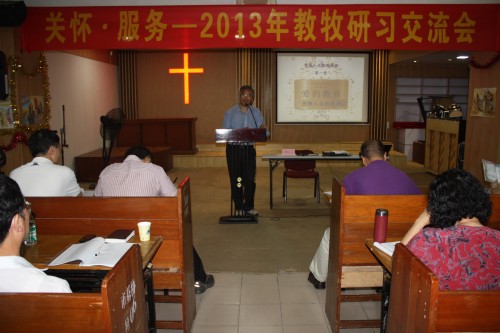 由广州市基督教两会主办的2013年度粤港教牧研习交流会于6月18-21日在广州市基督教东山堂综合楼一楼举行。本次教牧研习交流会的主题是:“关怀·服务”。广州市基督教全体在职教牧人员及两会办公室同工共59人参加学习。