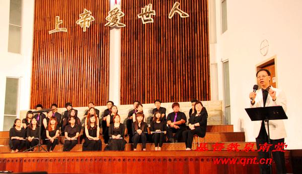2013年7月1日晚,福建泉南堂迎来远道而来的嘉宾,他们是来自台北基督教浸信会怀恩堂大专合唱团的弟兄姐妹们,他们在李耀斌牧师的带领下,在泉南堂举行了一场圣乐崇拜。