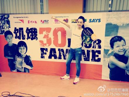 7月14日,基督徒艺人范玮琪以爱心大使的身份,出席马来西亚世界宣明会2013年饥饿30活动,并第一时间发布微博畅谈自己的感受。