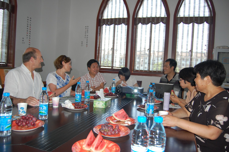 2013年7月17日下午,新加坡蓝钦强牧师一行6人来访苏州市狮山基督教堂,狮山堂主任牧师许恩杯牧师接待了来访客人。