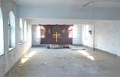 第一届圣经班教室设立在礼拜堂三楼,一间大约容纳五六十人的教室。走上台阶,推开后门(也是唯一一道门),空荡荡的教室里,一片暗红极吸引眼球,破旧的红布,遮住教室前面的墙壁,暗红底上,“十”字在“神爱世人”四个大字中间,红底金字,起初的气派可以想见。