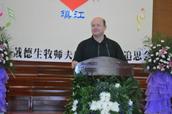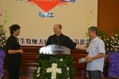 戴继宗牧师在师母献唱后分享,他说:“今天非常感动和感恩,想起了83年和父亲戴绍曾牧师到中国大陆寻访先人脚踪,在镇江福音堂受到胡士辉牧师热情接待。”他也感谢湖南教会的弟兄姊妹,他们奉献了棺木给戴德生牧师。戴牧师从约瑟凭着信心嘱咐后人将自己的骸骨回归应许之地,葬在亚伯拉罕的安息之处,讲到戴德生牧师夫妇墓址今日的迁移。他说:“超越、奇妙、爱我们的神永远在我们身边!”最后他以几十年前初次来镇江的父亲戴绍曾牧师的祷告结束分享。“愿感动戴德生的灵,加倍感动我们,为主做美好的见证”。