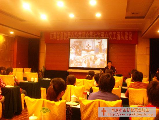 9月11-13日,江苏省基督教爱心公益基金第七期爱心义工培训在昆山举行,全省40多位教牧同工、弟兄姊妹参加。特邀大连教会的吴兵牧师讲授“教会青年事工”;省两会葛大威传道分享其在德国教会参加青年事工研讨会后的收获和感想;省民宗局顾传勇局长讲座“中国梦”。