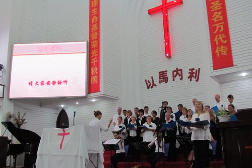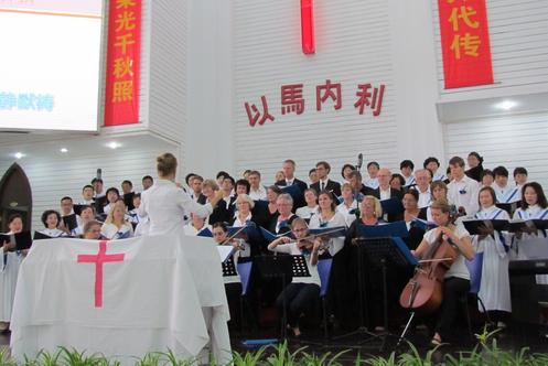 本次德国Bad Abbach基督教会唱诗班来常期间,参观了中国第八届花博会,并在市基督教堂主日礼拜献上高质量、高水平的演唱,同时与市基督教两会”天之韵圣乐团”同台合唱美国著名福音诗歌:《奇异恩典》。