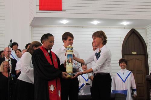在主日礼拜上,常州市基督教三自爱国会主席、协会会长梁化平牧师致欢迎辞并与客人互赠礼品。称来访必将进一步推动市基督教会的圣乐事工进程,加深中德基督教会的文化合作交流,也必将对市基督教扩展教会圣乐事工培训视野,汲取先进经验提供新的契机,注入新的活力。