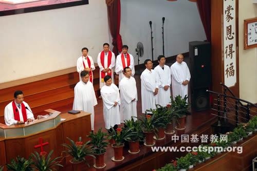 2013年10月2日下午,浙江省基督教协会组成按立小组在宁波慈溪市应莫基督教堂为六位同工进行了圣职按立。按立王其来同工、张文化同工、岑云达同工为牧师;按立范振华同工、周素娣同工为教师;按立马建立同工为长老。
