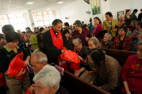 敬老节活动通过市基督教堂彭圣洁牧师负责的服务组同工的精心策划,同时也在市基督教两会“天之韵圣乐团”的积极配合下,教堂充满了温馨祥和的节日气氛。80岁以上老人登记名册250位,到场达160人,这些老年信徒佩戴红花,欢聚一堂。