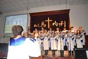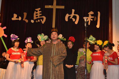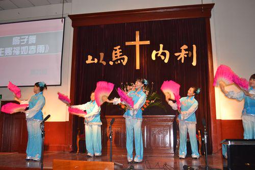诗篇上说:“普天下当向耶和华欢呼,你们当乐意侍奉耶和华,当来向他歌唱!”在北京市基督教缸瓦市堂150周年庆典之际,堂内各服侍组人员于昨晚(10月24日)献上了自己赞美,节目有圣诗、舞蹈和圣剧。