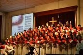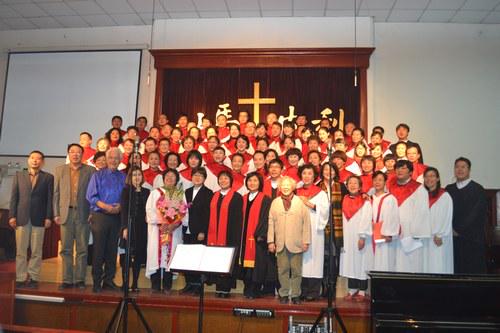 聚会结束时,教会牧者、特邀嘉宾和全体诗班成员一起合影留念。