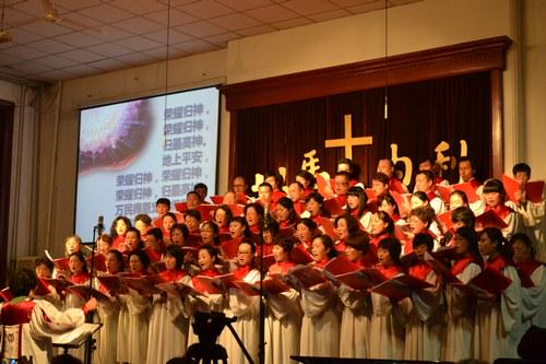 为纪念福音传入缸瓦市堂150周年,10月27日晚7:00~9:00北京基督教会缸瓦市堂举行了弥赛亚圣乐崇拜,60多位诗班成员通过赞美诗颂赞了耶稣的一生。