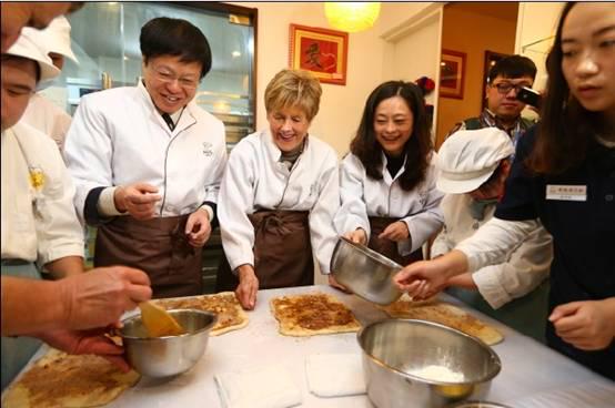 据爱德新闻,在宁期间,总督在南京大学发表“培养学习和创新”的演讲,之后与杰出的中国和加拿大小组成员进行讨论。而总督夫人携加拿大健康研究所所长Beaudet先生,加拿大总督府秘书处政策项目及礼宾处副处长Patricia Jaton女士等人一同来到了在爱德基金会下属社会企业爱德面包坊与智障学员们进行了一次有爱的亲密接触。爱德基金会副董事长兼秘书长丘仲辉和部分爱德基金会、爱德面包坊员工热情欢迎了这位远道而来的贵宾。