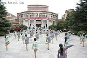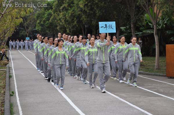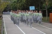 神学本科四个班和圣乐科以及教师的代表着装整齐,喊着响亮的口号,迈着矫健的步伐走进运动场。入场后,全体师生起立,奏国歌,升国旗。