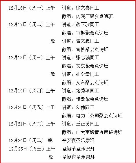 12月16日(周一)上午 讲道:徐文喜同工