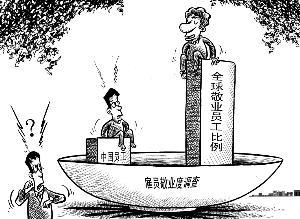 近日,盖洛普公司公布其2011- 2012年对全球雇员对工作投入程度的调查,结果显示,全球员工的敬业的比例仅为13%,而中国远远低于世界水平只有6%。其中敬业员工比例最高的国家为巴拿马、哥斯达黎加和美国。该调查对象为2011-2012年间142个国家和地区的员工,受访者通过回答盖洛普公司研制出来的12个问题,他们对工作的投入程度被分为敬业、从业和怠工。这12个问题包括员工在工作中是否学习成长,是否得到肯定,是否有朋友在公司等。调查认为,敬业的员工会为公司带去赢利创新,而消极怠工的员工反而会破坏敬业员工完成的业绩。