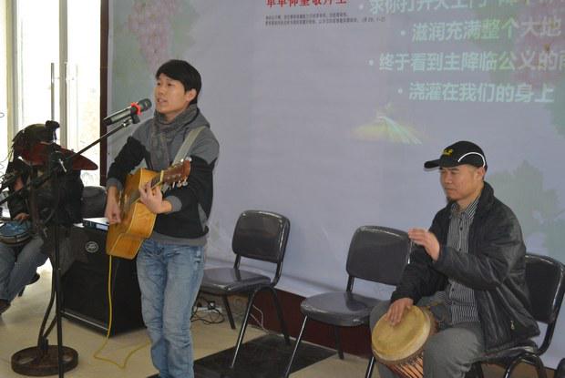 活动开始时,三位弟兄带领参加开幕仪式的大家进行了半个小时的赞美敬拜,赞美过程中还进行了祷告。