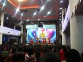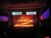 更令人惊讶的场面则在后面。十字架毕竟只是由一横一竖简单的笔画组成,但是“圣”这个字则相当复杂了。然而,台下的众人惊奇的发现,那些黑暗中的蜡烛突然变了形状,从十字架变成一个大大的“圣”字,着实令人吃惊不小。