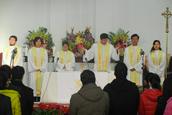 证道结束后,全体人员以唱诗的方式宣信了《尼西亚信经》。在奉献礼仪中,大家一起唱了《三博士歌》和《一切献上歌》并且进行了奉献。在圣餐礼仪中,大家一起唱了《主祷文》和《上主羔羊》后,在诗班颂唱《圣事中见主歌》的赞美声中,受洗的弟兄姐妹排队领取了圣餐。领完圣餐后,大家同唱《哈利路亚》。