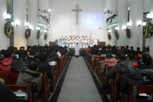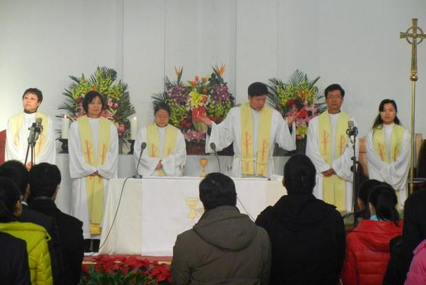 12月25日上午,燕京神学院举行的圣诞日崇拜包含五个礼仪:预备礼仪、圣道礼仪、奉献礼仪、圣餐礼仪和差遣礼仪,四个年级的神学生都参与了献诗。