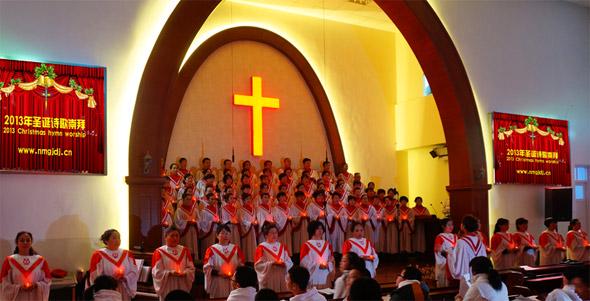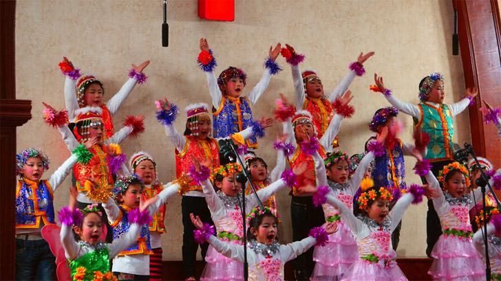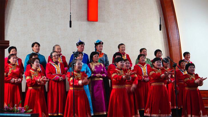 近日,内蒙古呼和浩特市基督教新城堂举办了圣诞节诗歌崇拜会。崇拜会上,有身着整齐服装的诗班献唱,也有弟兄姊妹穿上有民族特色的衣服,表演民族特色节目。此外,小朋友们也参与进来,献上精彩的舞蹈。