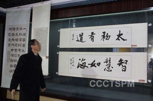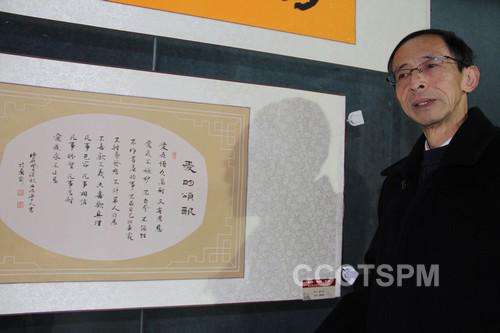 湖北省基督教两会送去九副作品参展,吴宗燕、傅于浩、张正禄、车传益等同工的作品受到广泛关注。中南神学院傅于浩老师的作品《太初有道》四个大字刚劲有力、吴宗燕姐妹的小行楷《爱的颂歌》字体隽秀,吸引了媒体和湖北省政协主席杨松的注意,湖北省基督教三自爱国运动委员会主席汪振仁牧师向杨松主席介绍了这两幅作品的意义和基督教的教义。